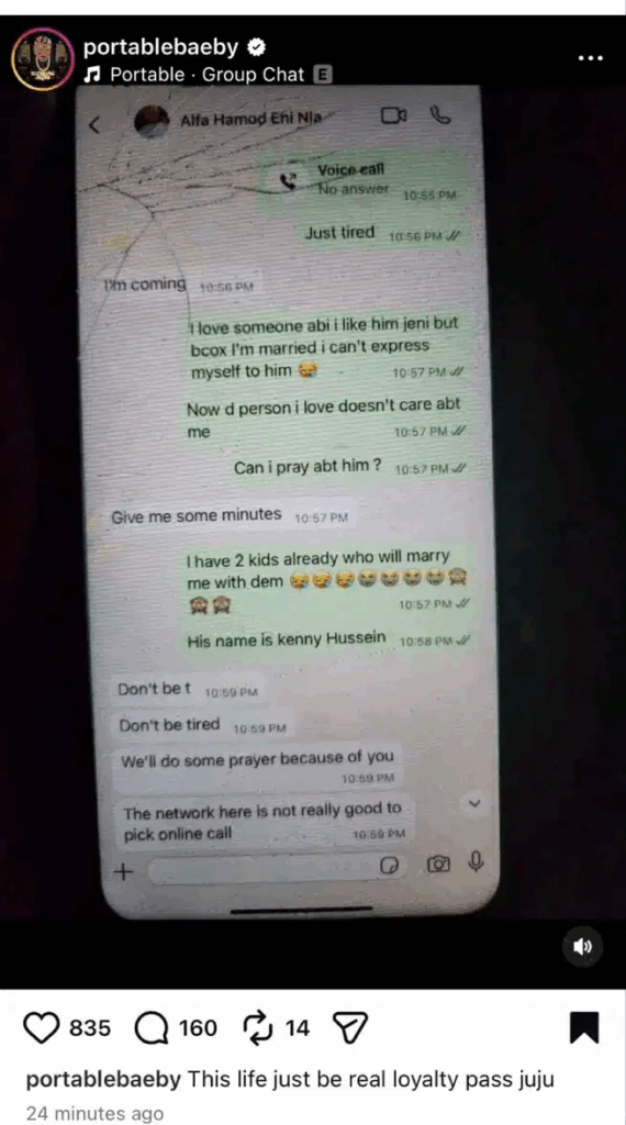 Nigerian street-hop singer, Habeeb Okikiola, popularly known as Portable, has once again stirred controversy on social media after leaking a private chat between his babymama, Ashabi Simple, and an Islamic cleric.