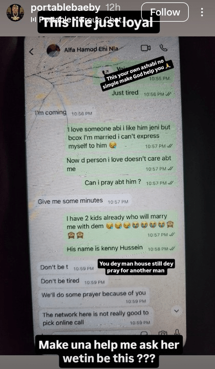 In the leaked chat, Ashabi allegedly confessed to having feelings for a man identified as Kenny Hussein, but expressed regret that her marital status prevented her from acting on those emotions.