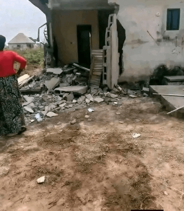 A man identified as Okon Michael has demolished a bungalow he built for his mother-in-law, after his wife divorced him two years after marriage.